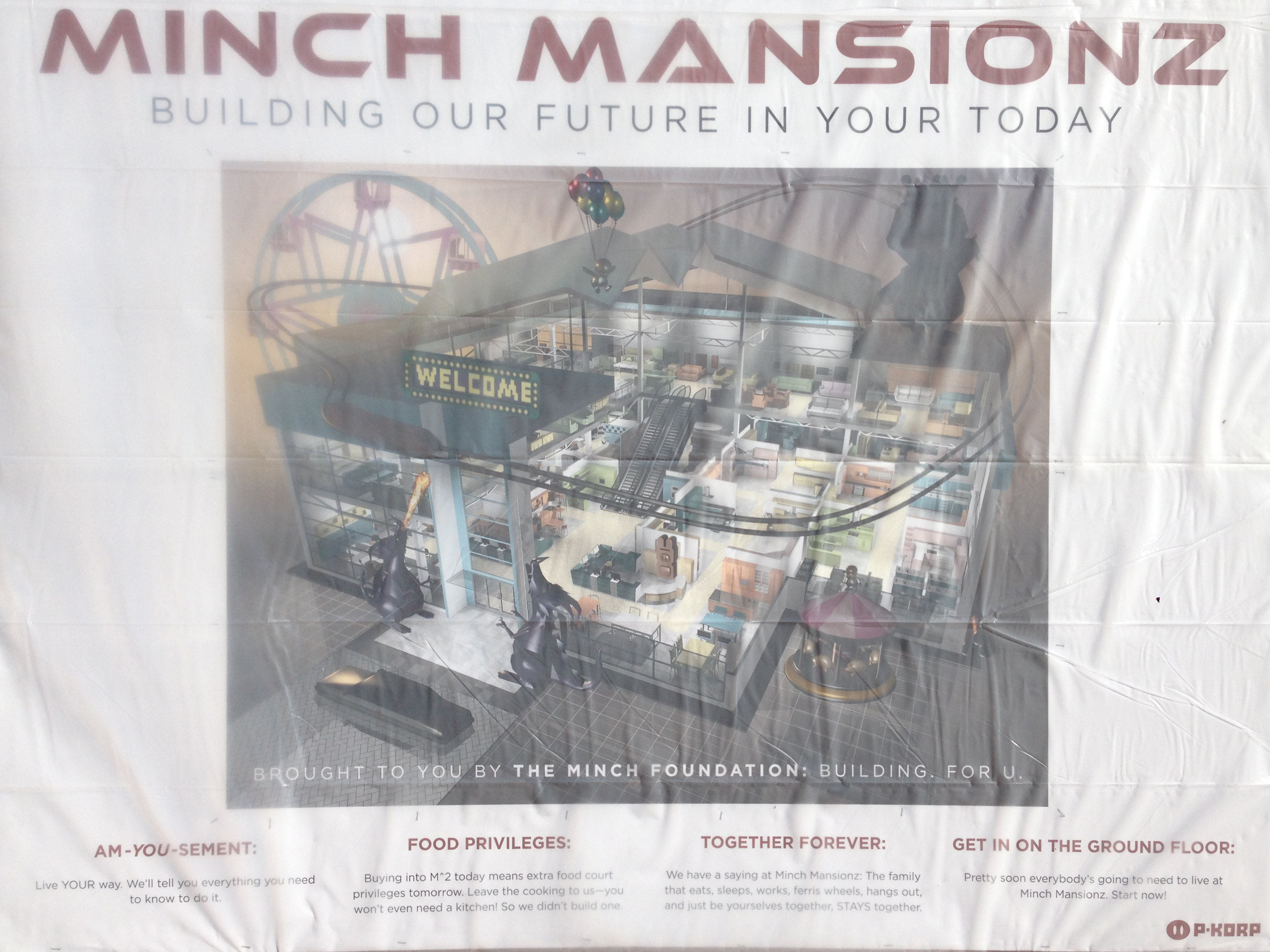 Campers playing Dungeon Man inevitably wandered out behind the Hilton to discover the abandoned lot out back would be the future home of Mich Mansionz – a hyper-controlled living environment dressed up as a theme park:
